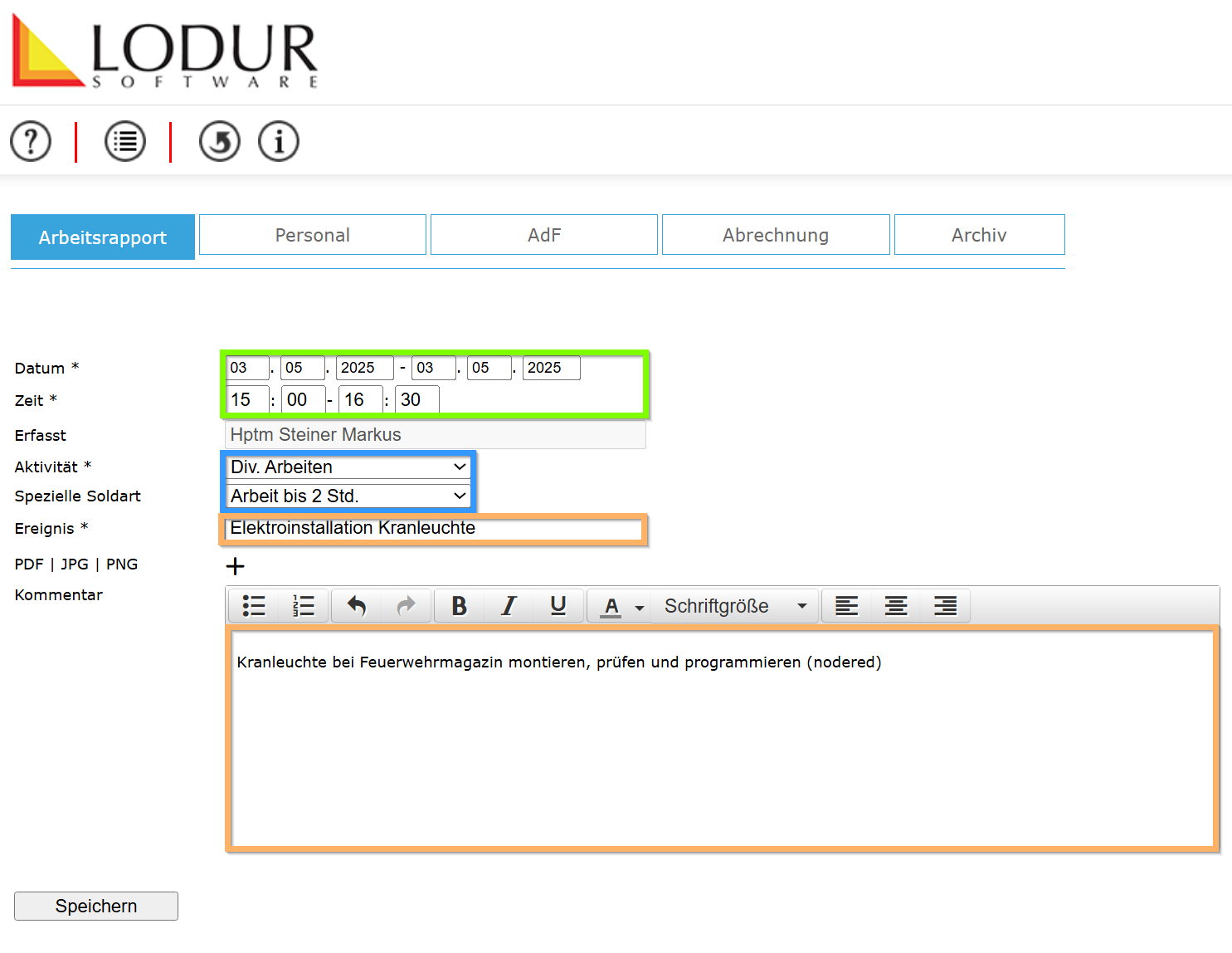 - Arbeitsrapport erstellen